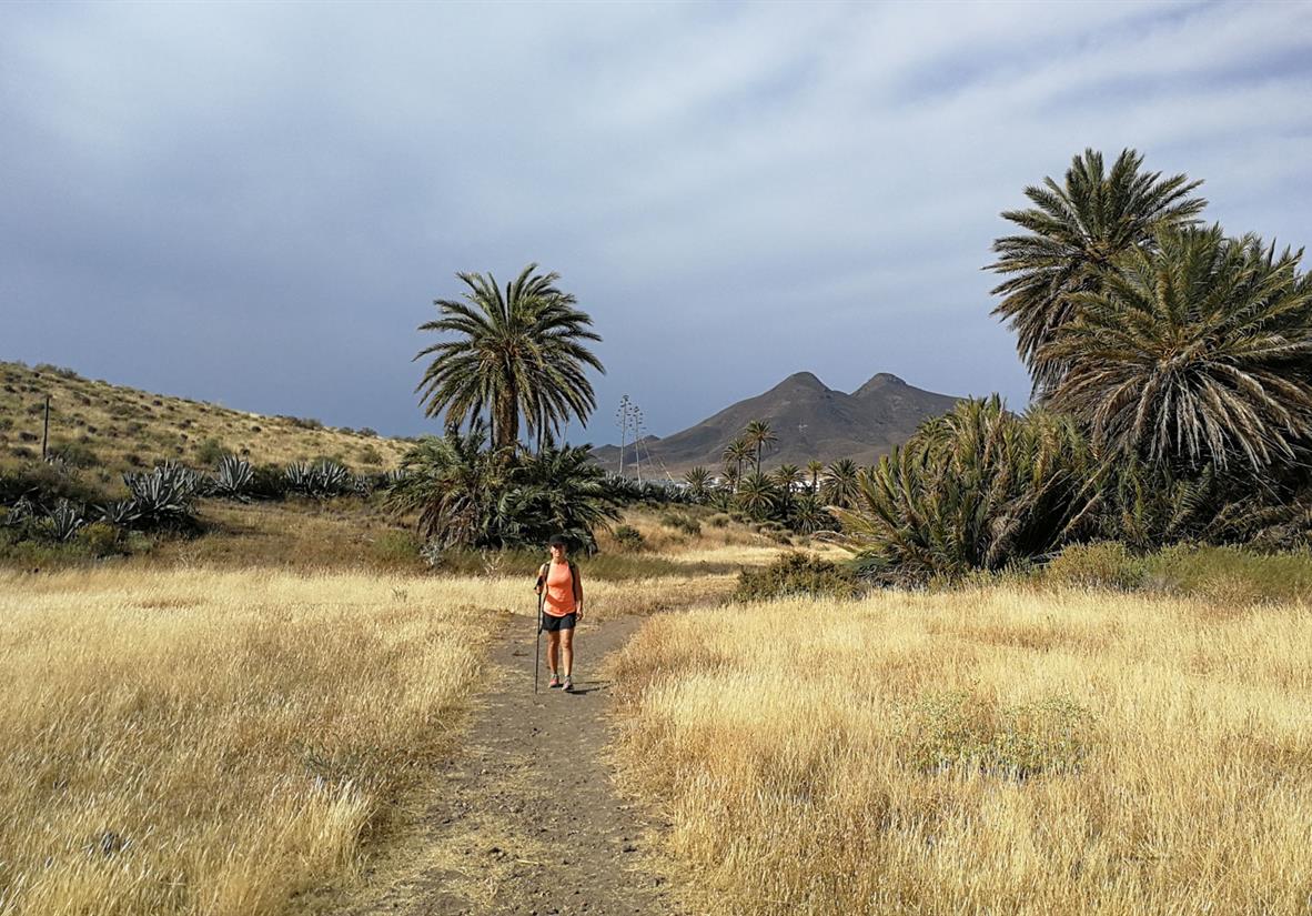 Die ersten 4 km Ihrer Wanderung gehen wieder zum Aussichtspunkt Amatista. Wenn Sie die Strecke nicht zweimal gehen möchten können Sie auch beim Gepäcktransport mitfahren. Vom Aussichtspunkt aus führt die Wanderung durch unberührtes Terrain, immer an den schroffen Klippen der Mittelmeerküste entlang. Unterwegs kommen Sie immer mal wieder an Oasen, Palmenhainen, weißen Dörfern und dunklen Sandstränden vorbei, bevor Sie Ihre Unterkunft in dem kleinen charmanten, authentischen Fischerdorf San José erreichen.