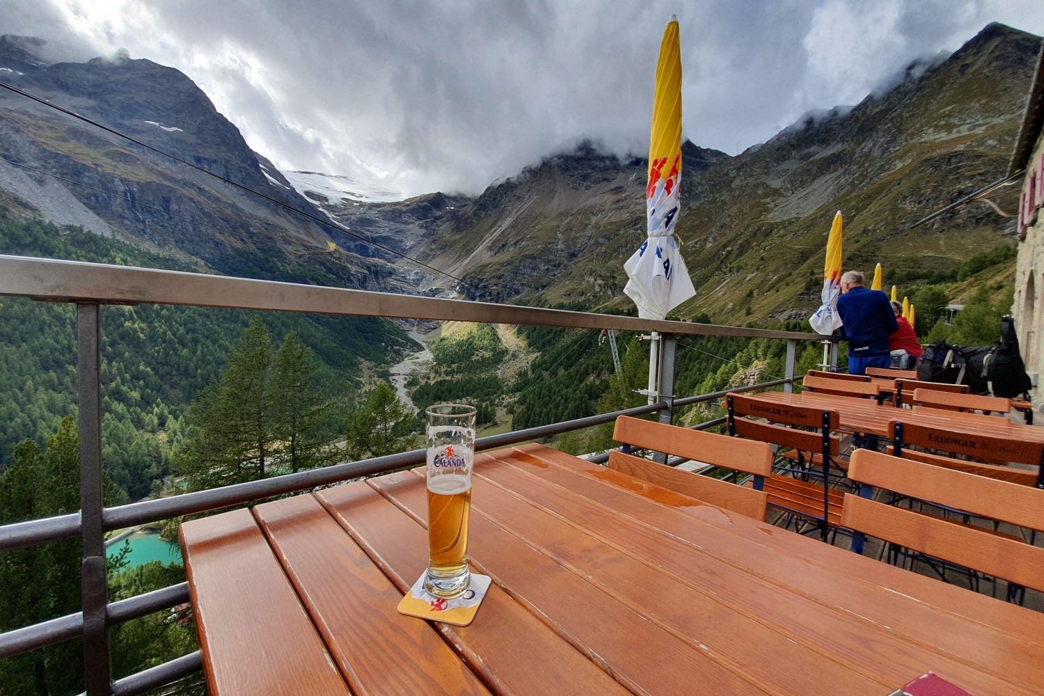 Ein Traum ist auch die Alpe Grüm, die nur per Bahn oder zu Fuß zu erreichen ist. Am Nachmittag auf der Terrasse ein erfrischendes Bier mit Blick auf den Gletscher – ein Wanderer-Traum.